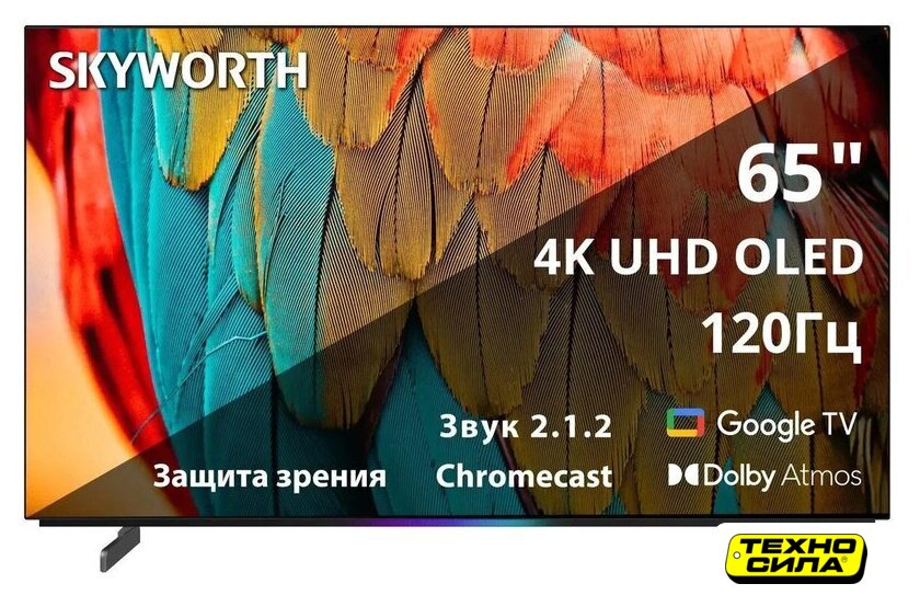 65" 3840x2160 (4K UHD), частота матрицы 120 Гц, Smart TV (Google TV), HDR10, Dolby Vision IQ, HLG, Dolby Atmos, AirPlay, Wi-Fi