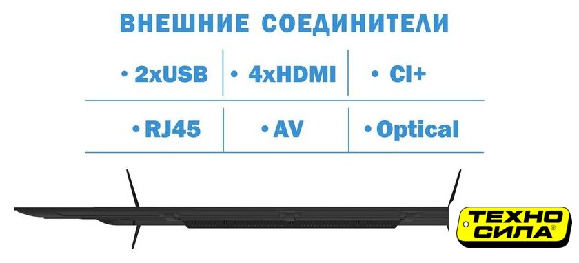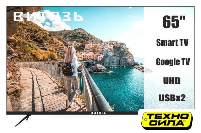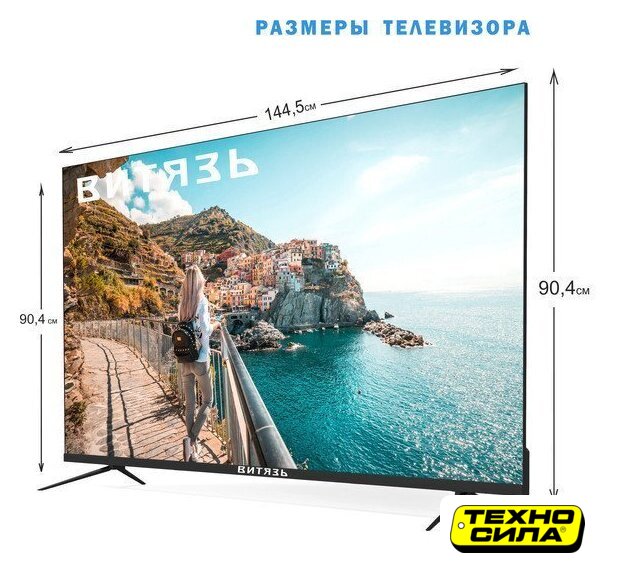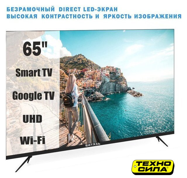 65" 3840x2160 (4K UHD), матрица VA, частота матрицы 60 Гц, Smart TV (Android), HDR10, HDR10+, Dolby Vision, Dolby Atmos, Wi-Fi, смарт пульт