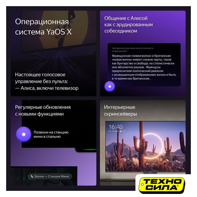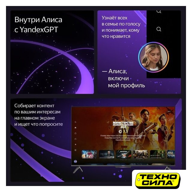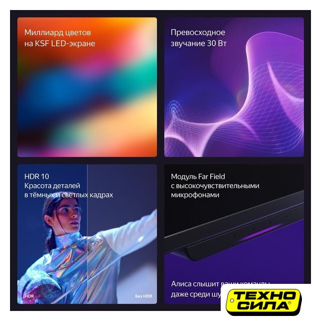 55" 3840x2160 (4K UHD), частота матрицы 144 Гц, Smart TV (Google TV), HDR10, HDR10+, Dolby Vision, Dolby Vision IQ, HLG, Dolby Atmos, AirPlay, Wi-Fi, смарт пульт