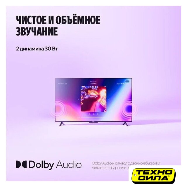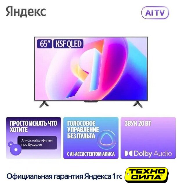 65" 3840x2160 (4K UHD), матрица VA, частота матрицы 120 Гц, Smart TV (Google TV), HDR10, Dolby Vision, HLG, Dolby Atmos, AirPlay, Wi-Fi, смарт пульт