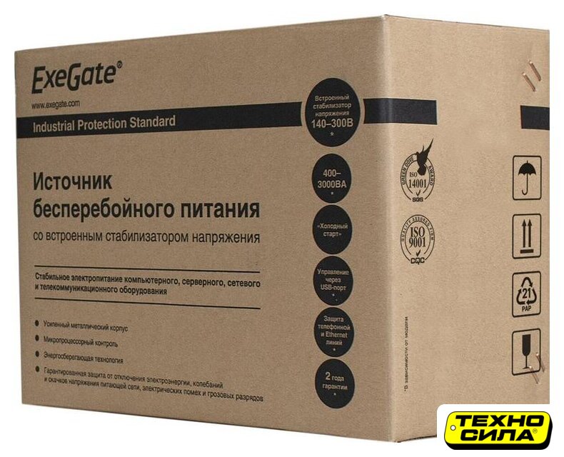 480 Вт, line-interactive, 2 розетки евро с заземлением, время автономного питания: до 1.3 мин (при 100% нагрузке)