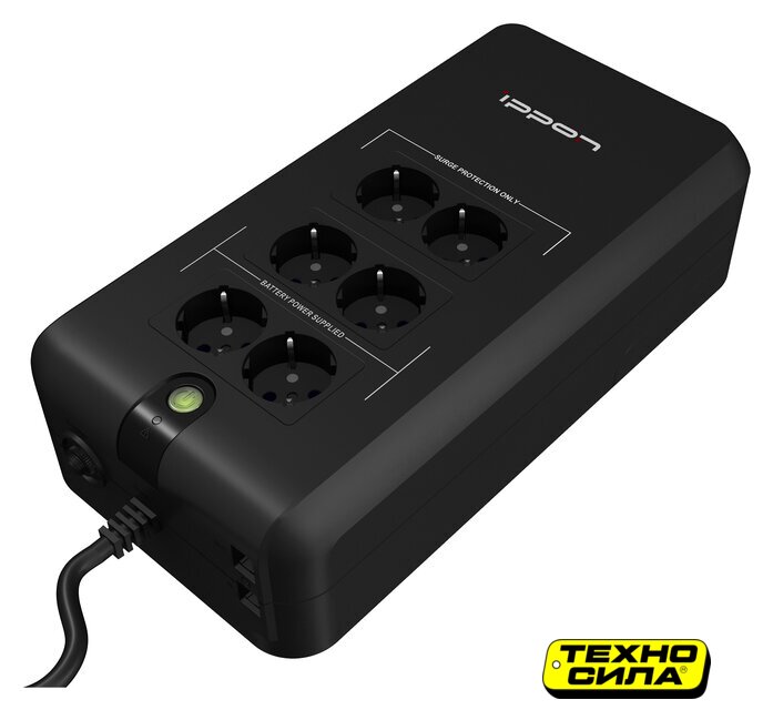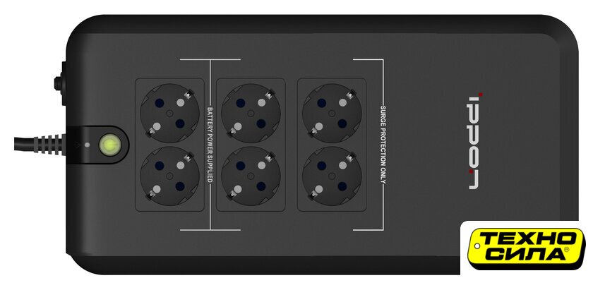 425 Вт, offline (stand-by), 6 розеток, время работы при максимальной нагрузке: до 13 мин