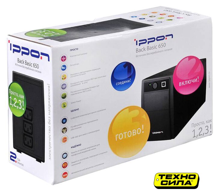 480 Вт, line-interactive, 2 розетки евро с заземлением, время автономного питания: до 1.3 мин (при 100% нагрузке)