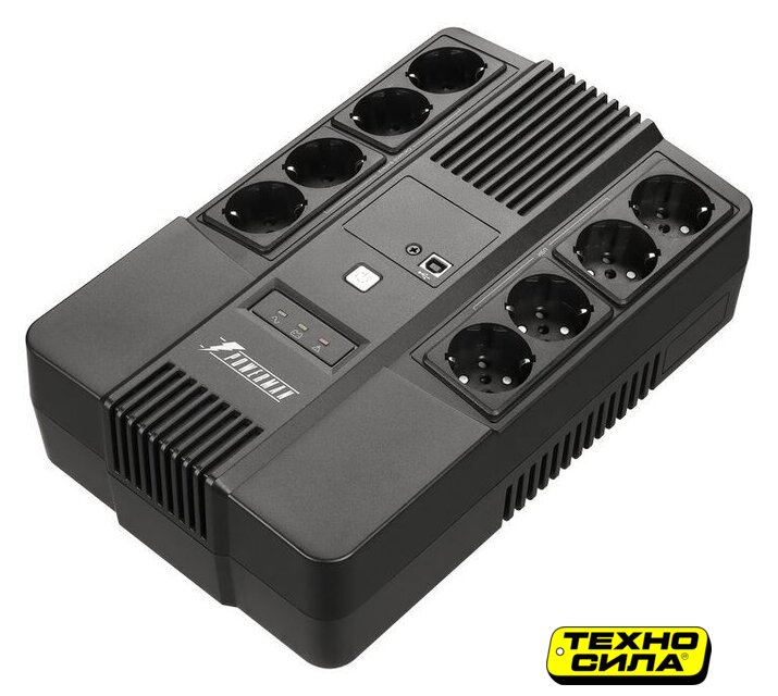 350 Вт, offline (stand-by), 3 розетки, время работы при максимальной нагрузке: до 4 мин