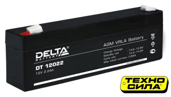 AGM, 12 В, 2.2 А·ч, макс. ток 34.5 А, клеммы F1, 178x35x61 мм, 0.99 кг, срок службы: 6 лет