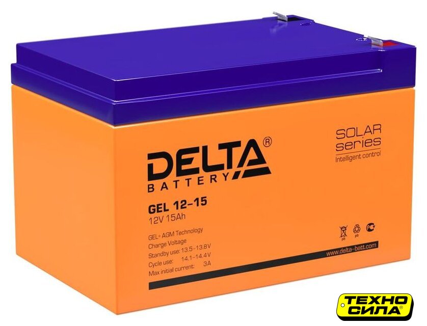 AGM, 12 В, 12 А·ч, макс. ток 180 А, клеммы F2, 151x98x95 мм, 3.9 кг, срок службы: 8 лет