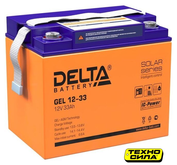 GEL, 12 В, 33 А·ч, макс. ток 330 А, клеммы T13, 195x130x155 мм, 11 кг, срок службы: 12 лет