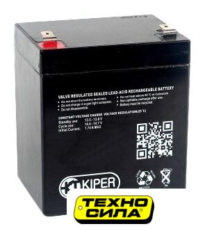 AGM, 12 В, 5 А·ч, макс. ток 75 А, клеммы F1, 90x70x101 мм, 1.8 кг, срок службы: 6 лет