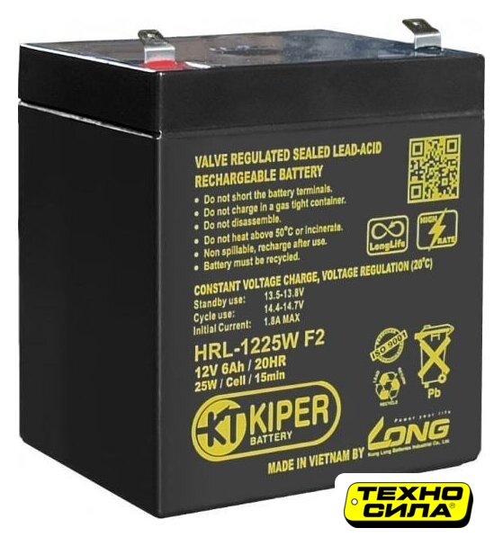 AGM, 12 В, 12 А·ч, макс. ток 165 А, клеммы F2, 151x98x95 мм, 3.7 кг, срок службы: 5 лет