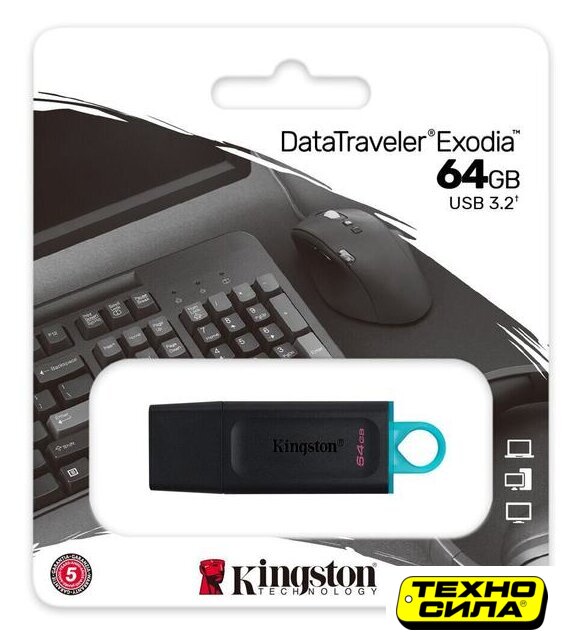 64 ГБ, USB 3.2 Gen 1 Type-A (5 Гбит/сек), раскладной корпус, пластик, цвет черный