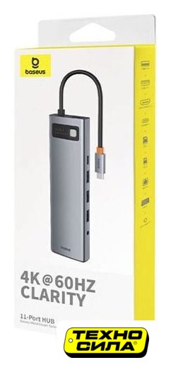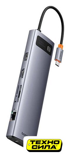 подключение по USB-C, 3 x USB-A, 2 x USB-C, видео до 4K 30 Гц, питание USB-C PD до 87 Вт, LAN-адаптер 100 Мбит/с, кардридер, корпус металл