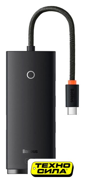 USB Type-A 3.2 Gen1 (5 Гбит/с), 4 порта, комбинированное питание, кабель 0.5 м, цвет черный