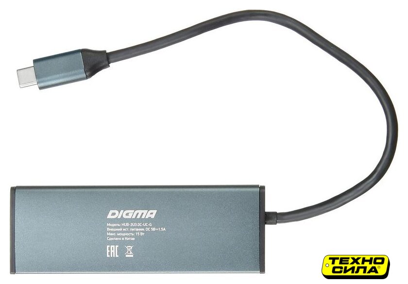 USB 3.2 Gen1 (5 Гбит/с)/micro USB 2.0, 4 порта, пассивное питание, цвет серый