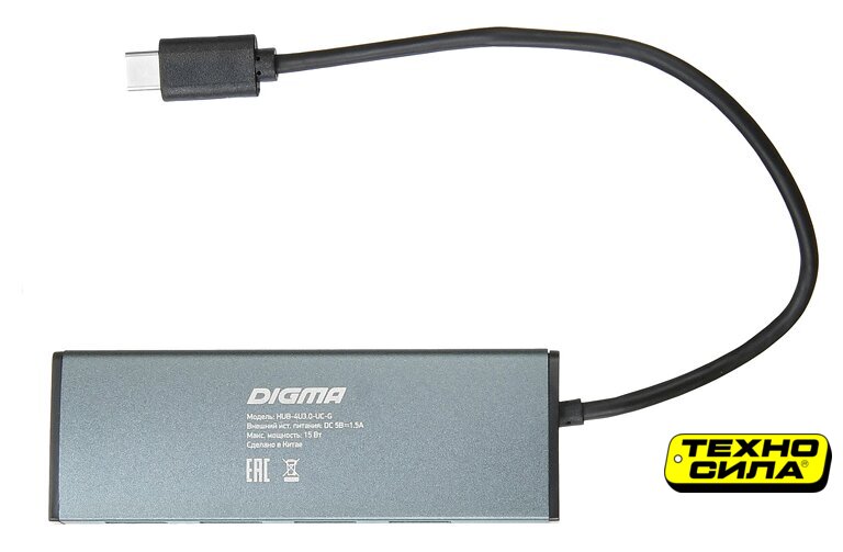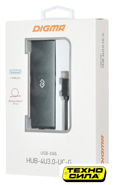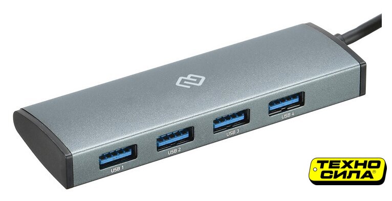USB Type-A 3.2 Gen1 (5 Гбит/с), 4 порта, пассивное питание, кабель 0.15 м, цвет серый