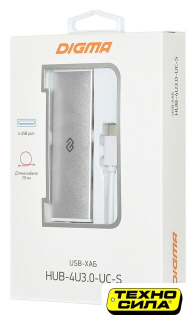 USB Type-A 3.2 Gen1 (5 Гбит/с), 4 порта, пассивное питание, кабель 0.25 м, цвет черный