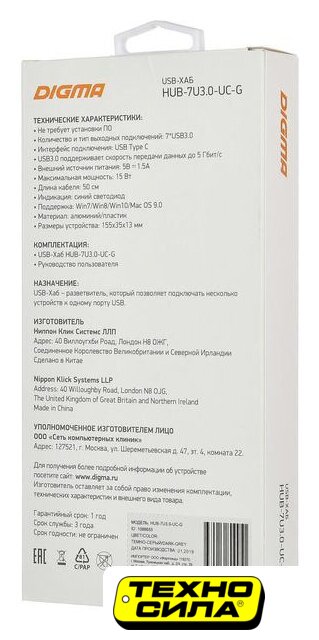 USB 3.0, 4 порта, комбинированное питание, цвет серый