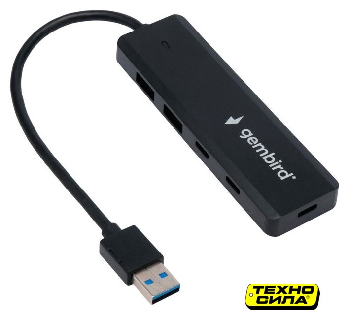 USB Type-A 3.2 Gen1 (5 Гбит/с), 4 порта, комбинированное питание, кабель 0.15 м, цвет черный