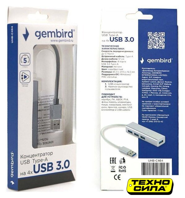 | Все разъемы на адаптере | USB-A 3.2 Gen1 (5 Гбит/с) |
