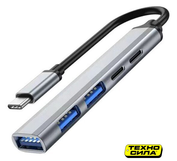 USB Type-A 3.2 Gen1 (5 Гбит/с)/USB Type-C, 5 портов, 4 - USB Type A; 1 - USB Type C., пассивное питание, кабель 0.25 м, цвет черный