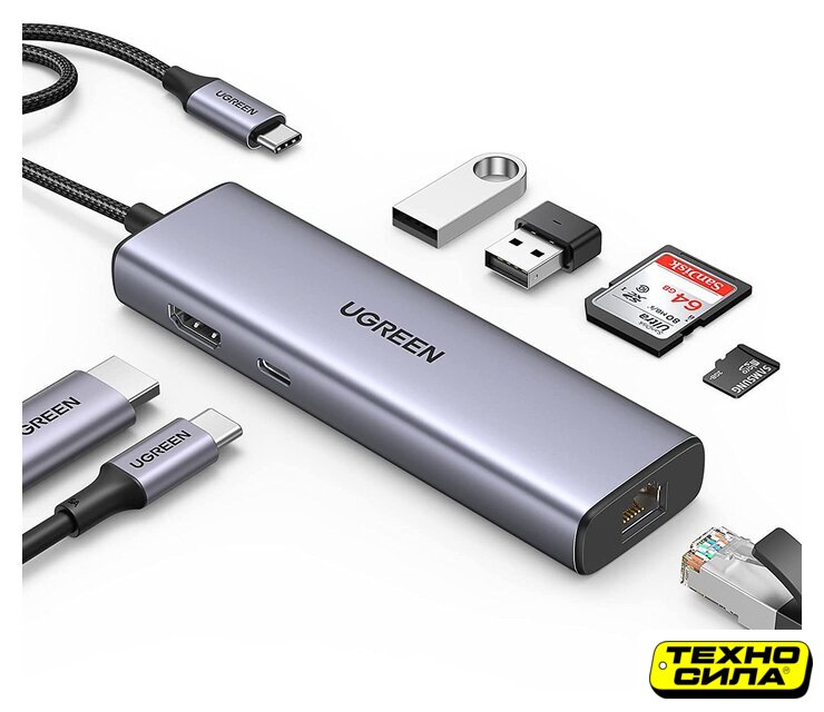 подключение по USB-C, 3 x USB-A, 1 x USB-C, видео до 4K 30 Гц, питание USB-C PD до 100 Вт, LAN-адаптер 1000 Мбит/с, кардридер, корпус металл