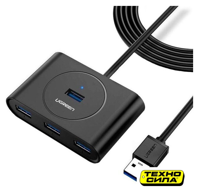 USB Type-A 3.2 Gen1 (5 Гбит/с)/USB Type-C, 5 портов, 4 - USB Type A; 1 - USB Type C., пассивное питание, кабель 1 м, цвет черный