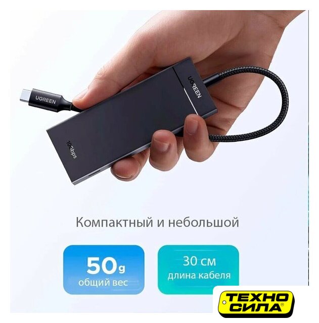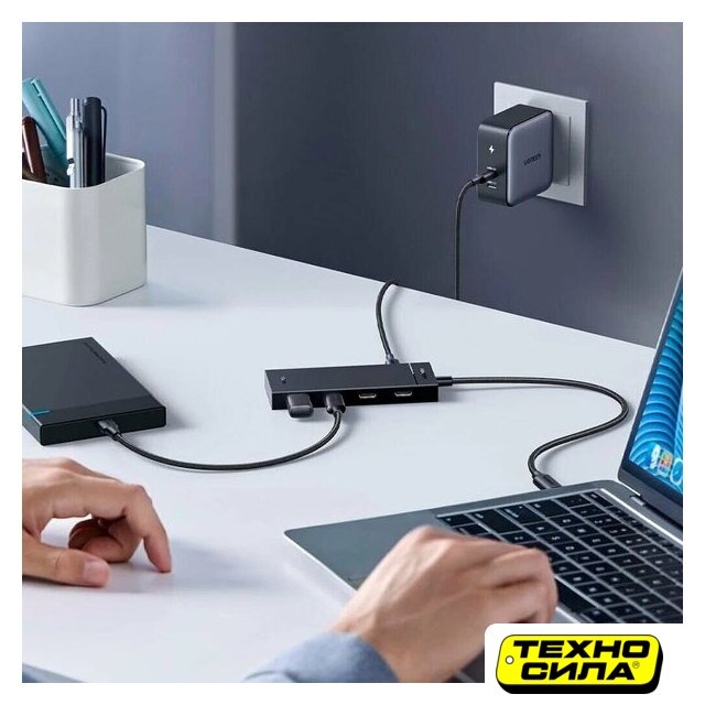 подключение по USB-C, 1 x USB-A, 1 x USB-C, видео до 4K 30 Гц, питание USB-C PD до 100 Вт, корпус металл