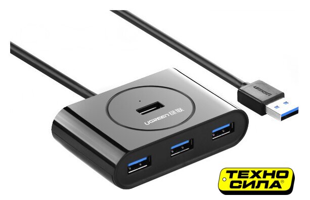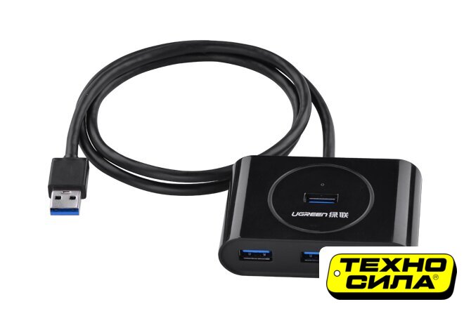 USB Type-A 3.2 Gen1 (5 Гбит/с), 4 порта, пассивное питание, кабель 1 м, цвет черный