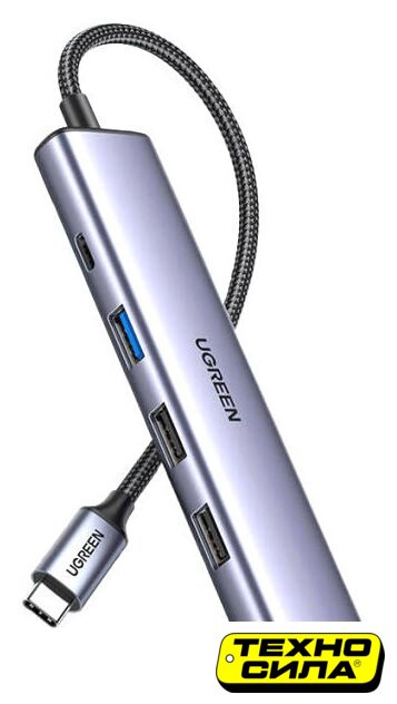 USB 3.2 Gen1 (5 Гбит/с)/micro USB 2.0, 4 порта, пассивное питание, цвет серый