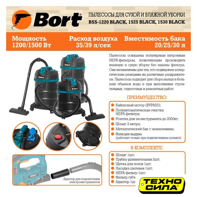 строительный, сеть, мощность всасывания: 270 Вт, потребление: 1600 Вт, шум 78 дБ