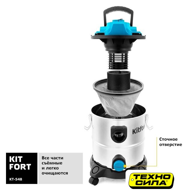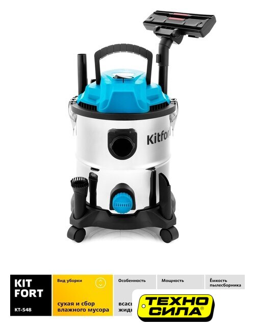 хозяйственный, пылесборник: контейнер (циклонный), мощность всасывания: 250 Вт, потребление: 1250 Вт, труба: пластик, без регулировки мощности
