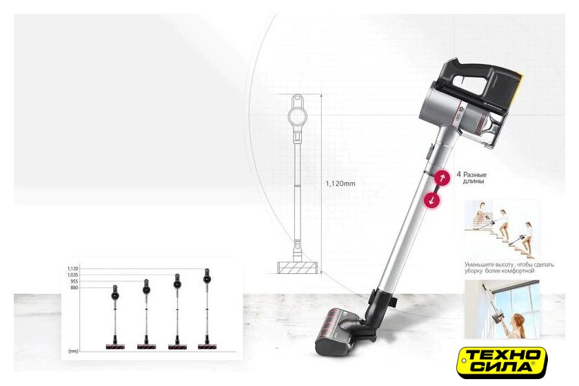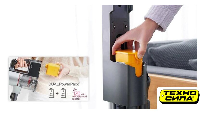 вертикальный 2-в-1, аккумулятор, регулировка мощности, турбощетка, док-станция с зарядкой, шум 82 дБ