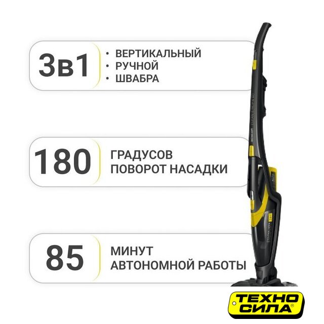 вертикальный 2-в-1/вертикальный с влажной уборкой, аккумулятор, потребление: 180 Вт, шум 70 дБ