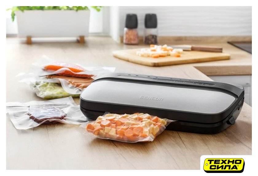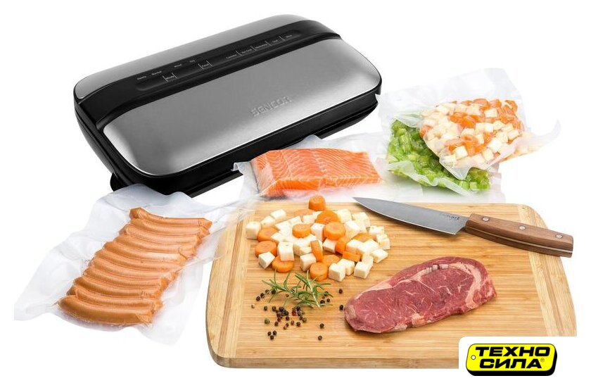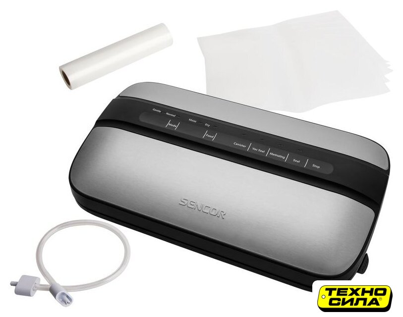 бескамерный, 110 Вт, 12 л/мин, пакет/пленка, рулон, черный/нержавеющая сталь