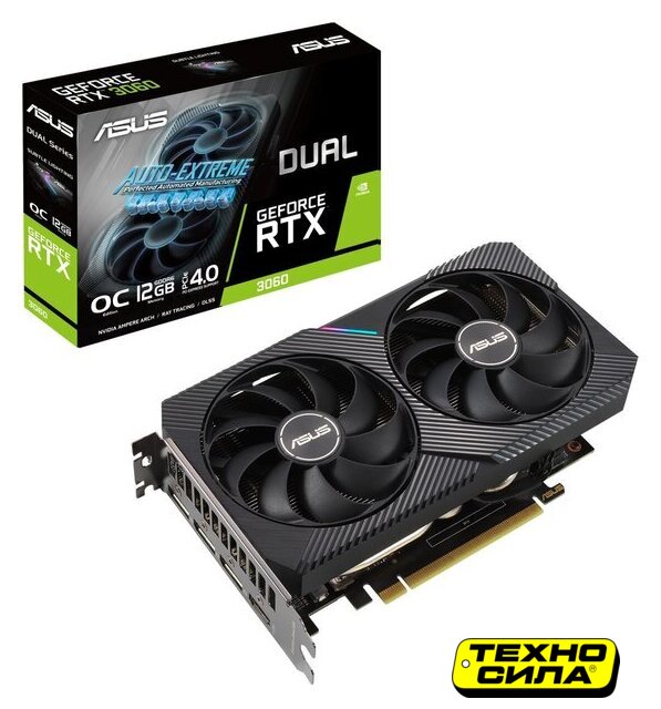 NVIDIA GeForce RTX 3060, базовая частота 1777 МГц, 3584sp, частота памяти 15000 МГц, 192 бит, доп. питание: 8 pin, 2.2 слота, HDMI, DisplayPort