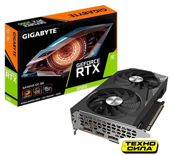 12 ГБ GDDR6 LHR, 1320 МГц / 1792 МГц, 3584sp, 28 RT-ядер, трассировка лучей, 192 бит, 2 слота, питание 8 pin, HDMI, DisplayPort