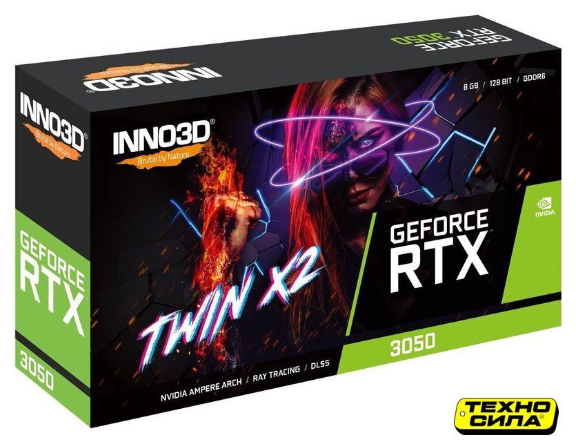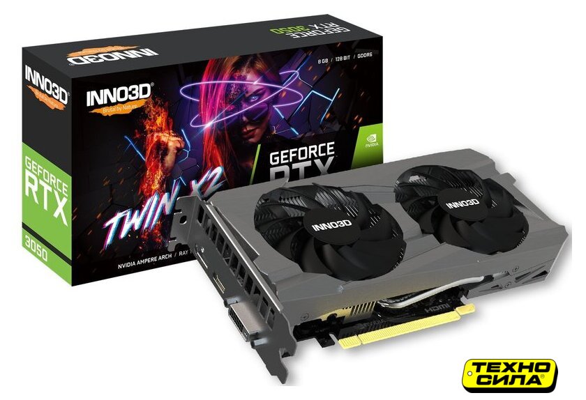 8 ГБ GDDR6 LHR, 1550 МГц / 1777 МГц, 2560sp, 20 RT-ядер, трассировка лучей, 128 бит, 2 слота, питание 6 pin, HDMI, DisplayPort, DVI
