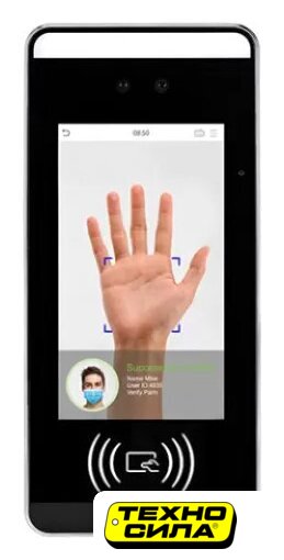 биометрический терминал, экран 8", 1280х800, громкая связь, сенсорное/с мобильного телефона управление, запись видео, угол обзора панели 95°, ИК-подсветка, бесконтактный доступ