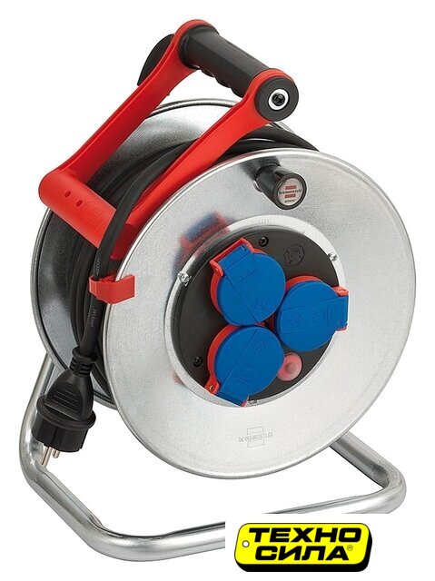 удлинитель на катушке, кабель 50 м, 3 розетки Schuko (евро с заземлением)