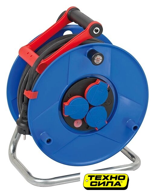 удлинитель на катушке, кабель 50 м, 3 розетки Schuko (евро с заземлением)