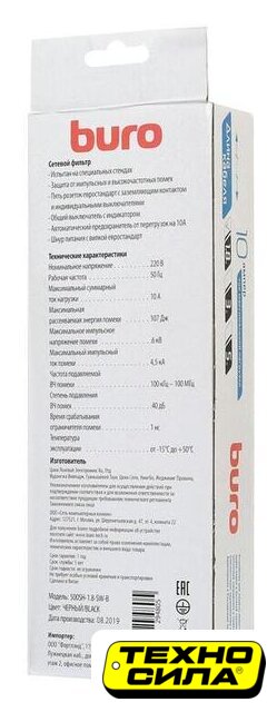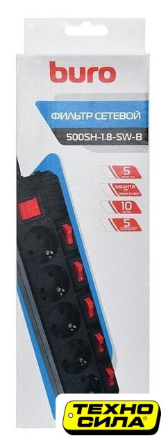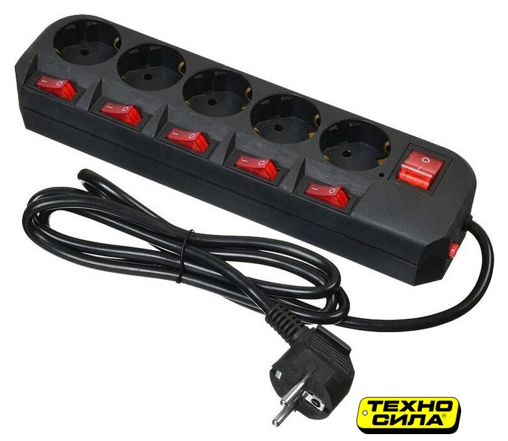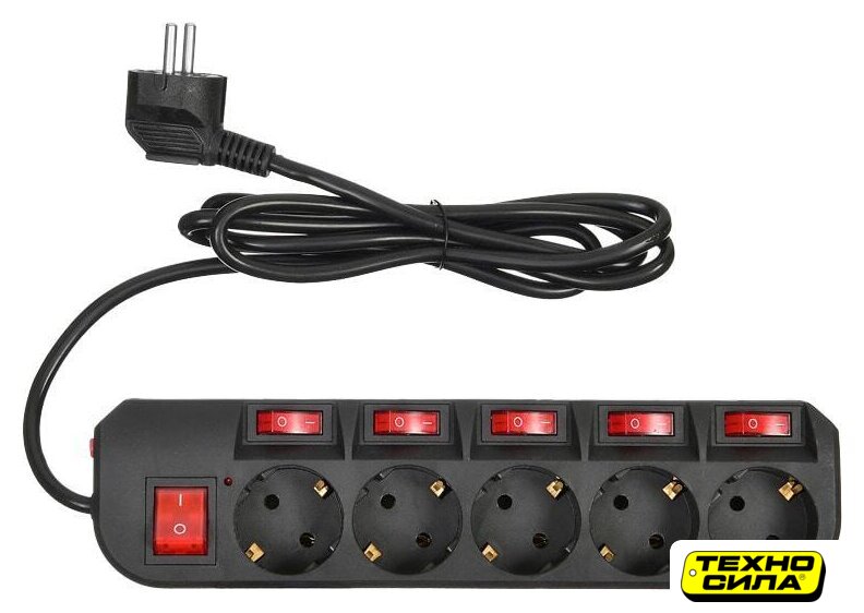 сетевой фильтр, кабель 5 м, 5 розеток Schuko (евро с заземлением) / 2200 Вт