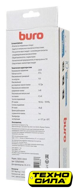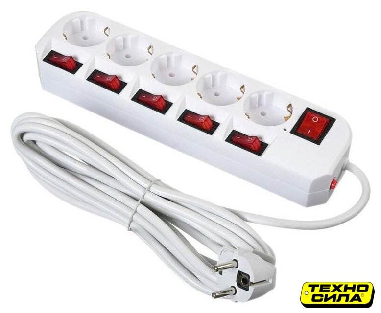 сетевой фильтр, кабель 3 м, 5 розеток Schuko (евро с заземлением) / 2200 Вт