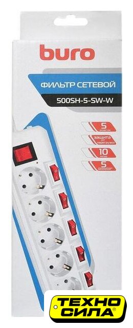 сетевой фильтр, кабель 1.8 м, 5 розеток Schuko (евро с заземлением) / 2200 Вт