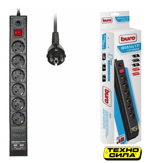 сетевой фильтр, кабель 1.5 м, 3 розетки Schuko (евро с заземлением) / 3500 Вт