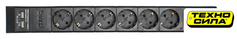 сетевой фильтр, кабель 5 м, 6 розеток Schuko (евро без заземления) / 1300 Вт