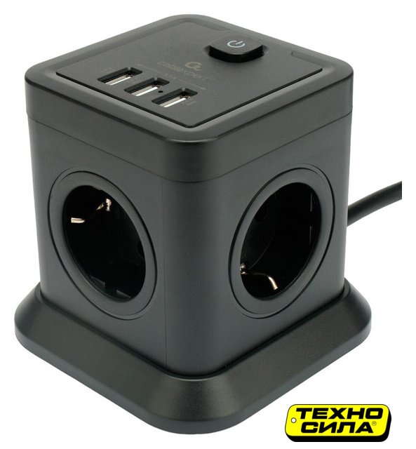 сетевой фильтр, кабель 1.5 м, 3 розетки Schuko (евро с заземлением) / 2500 Вт/USB
