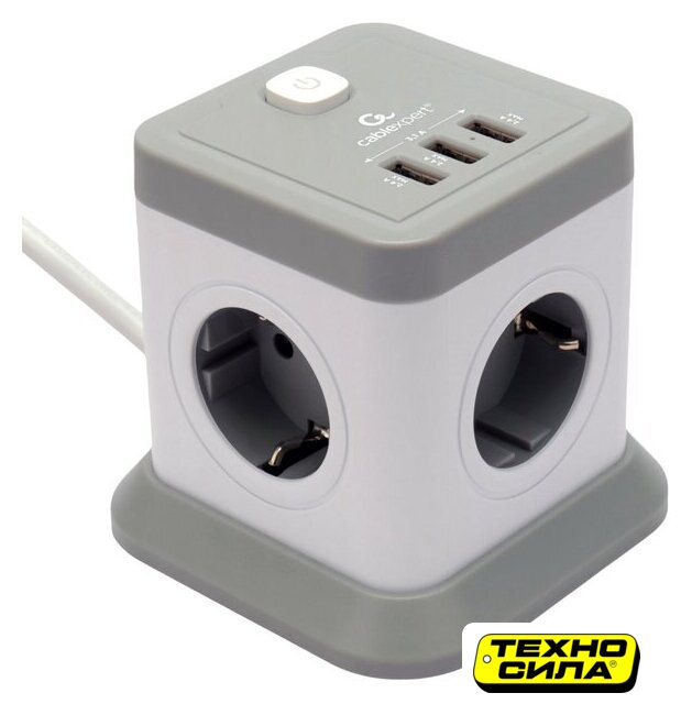 сетевой фильтр, кабель 3 м, 4 розетки Schuko (евро с заземлением) / 2500 Вт/USB