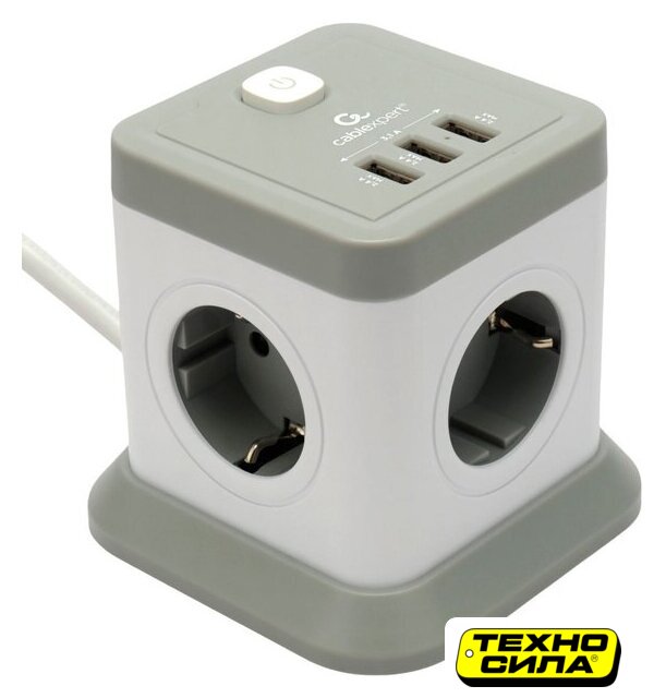 сетевой фильтр, кабель 3 м, 4 розетки Schuko (евро с заземлением) / 2500 Вт/USB
