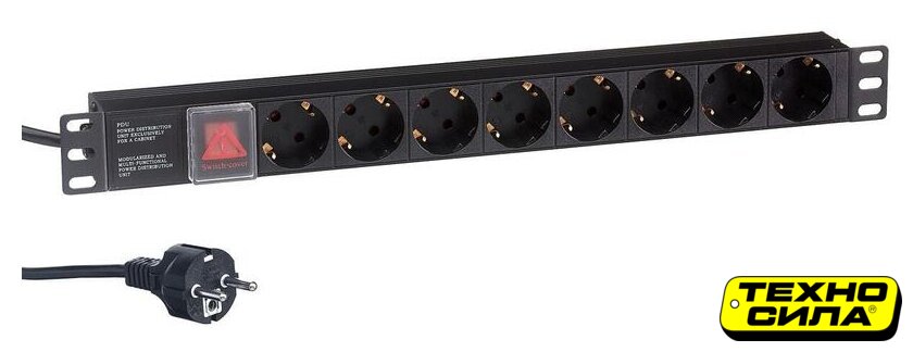 блок розеток, кабель 1.8 м, 8 розеток Schuko (евро с заземлением)