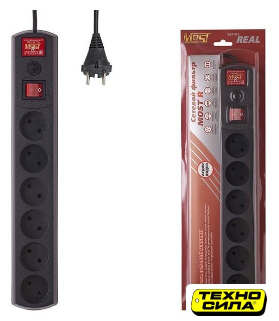 сетевой фильтр, кабель 1.8 м, 6 розеток Schuko (евро с заземлением), 3500 VA