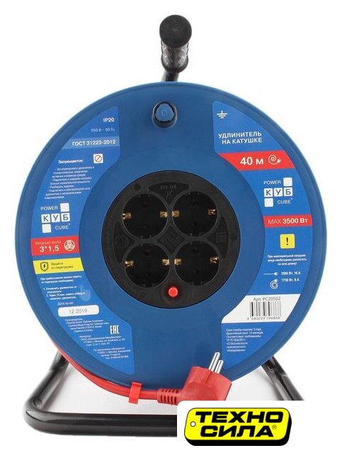 удлинитель, 50 м, 4 розетки евро с заземлением / 3500 Вт